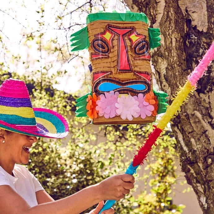 Everyone loves playing piñata and it’s even more fun when you can take it outside! Pick a piñata and then tie it to a tree branch, basketball hoop or washing line for some outdoor fun!