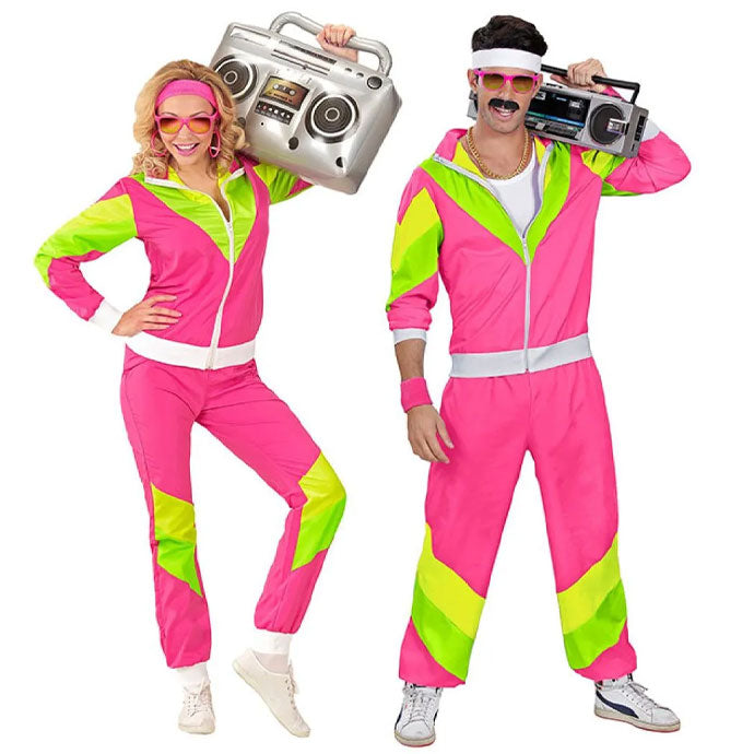 The brighter the better when it comes to shell suits and we've got a full collection of pink, green and even leopard print suits. Perfect for an 80s couples costume accessories with sweat bands and your favourite trainers.
