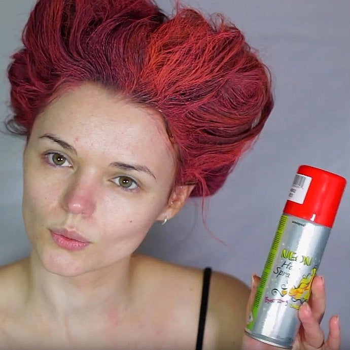 Then use hairspray, hair pins and two hair ties to put your hair into a heart shape. Spray it with red hairspray.