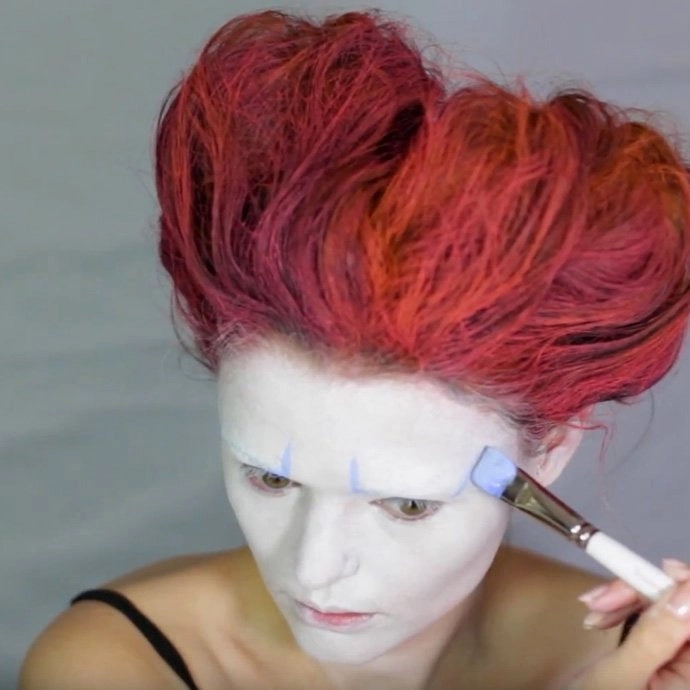 Then paint four lines either side of your eyebrows with pale blue face paint like this.