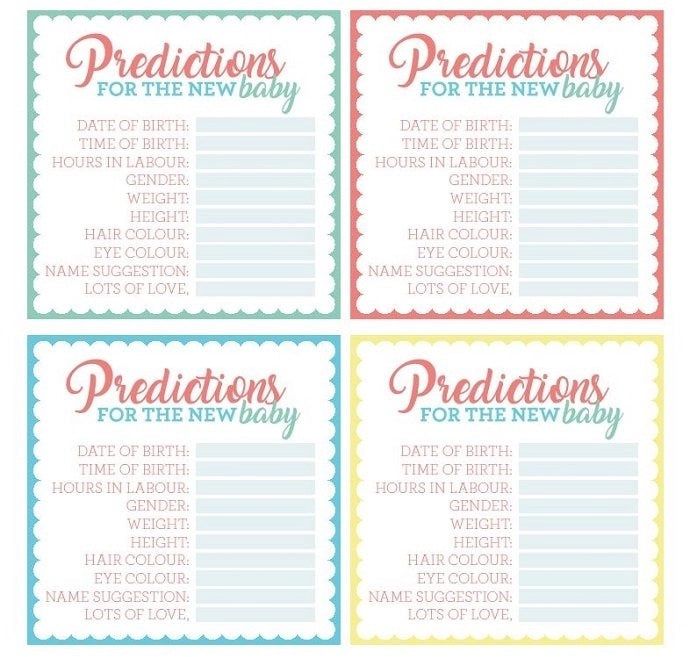 Free Printable Baby Shower Prediction Cards
