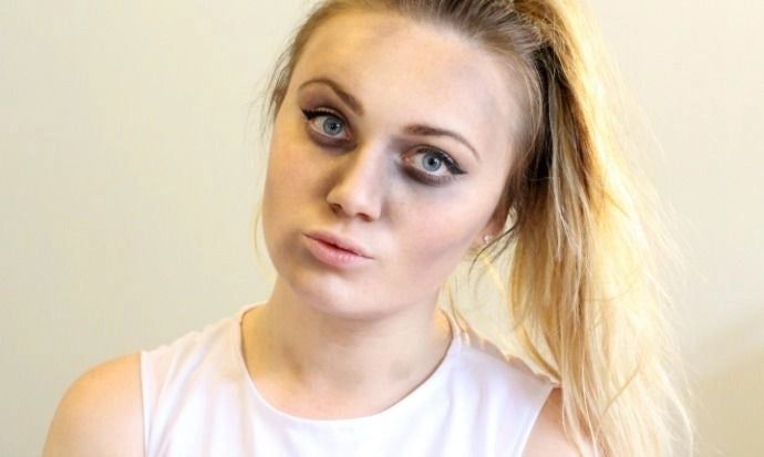 Now it’s time to get bruised up a little! For this, I’ve gone with a fluffy eyeshadow brush and a matte grey shade to roughly bruise under my eyes, around my nose and along the hollows of my face.
