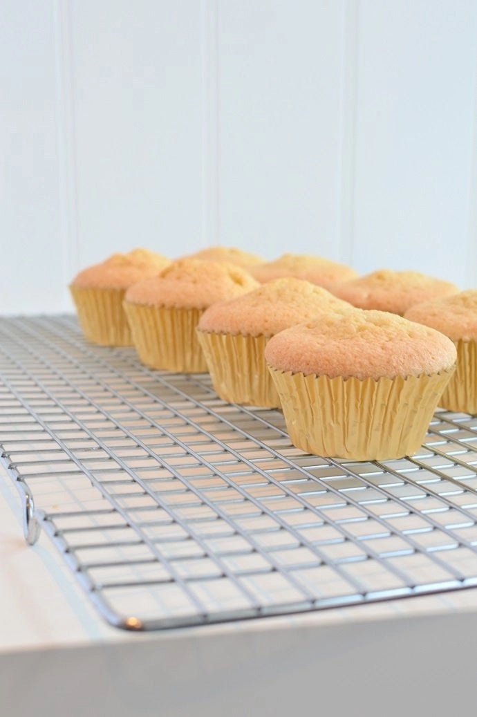 When they’ve been out of the oven for 10 minutes, take them out of the cupcake tray and leave them to cool on a rack.