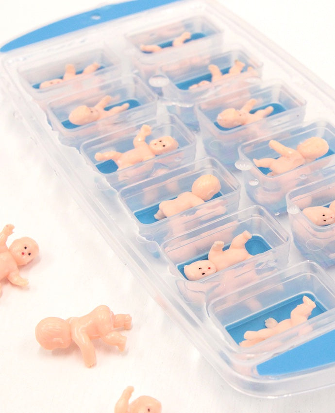 The night before the baby shower, fill an ice cube tray with these mini plastic babies and fill it with water. Leave it in the freezer overnight in preparation for the baby shower.