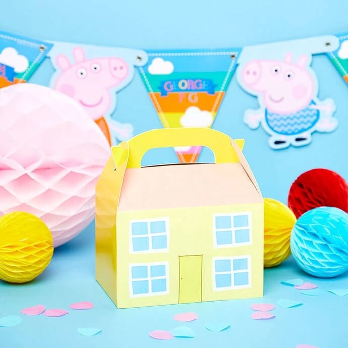 Party boxes are a great way to serve your party food, as everything can be prepped in advance. To make yours match your party theme, you could decorate these plain white party boxes with this clever printable house design to turn them into Peppa’s home. They’re so cute and easy to do!