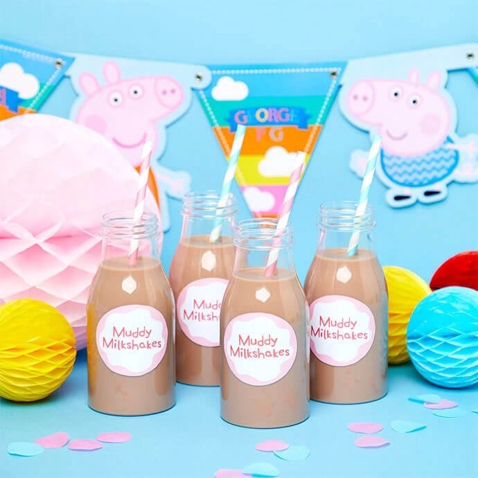 Anyone who’s ever watched an episode of Peppa Pig knows how much she loves splashing around in muddy puddles! Chocolate milk is a nice treat for your little one on their birthday, especially with these cool free Muddy Milkshake printables stuck on each bottle.