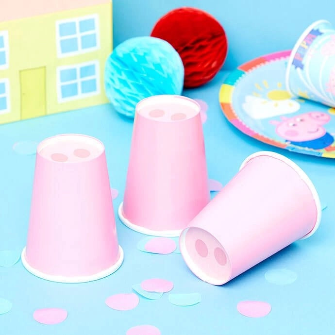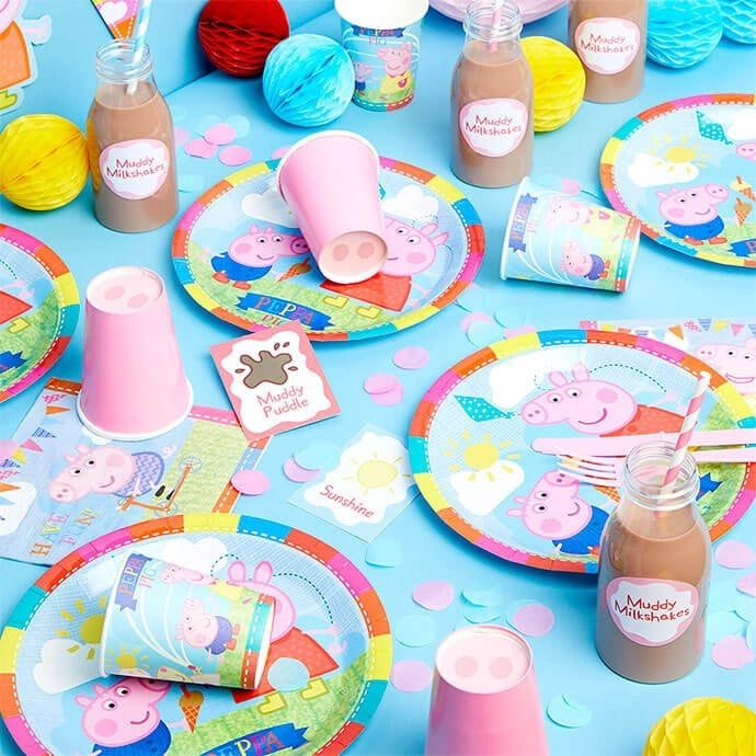 Next, pick up all the essentials like plates, cups, napkins and tablecloths. Themed tableware is an absolute must for your Peppa Pig party and this fun tableware selection featuring Peppa and George adds plenty of pastel colours to your celebration.