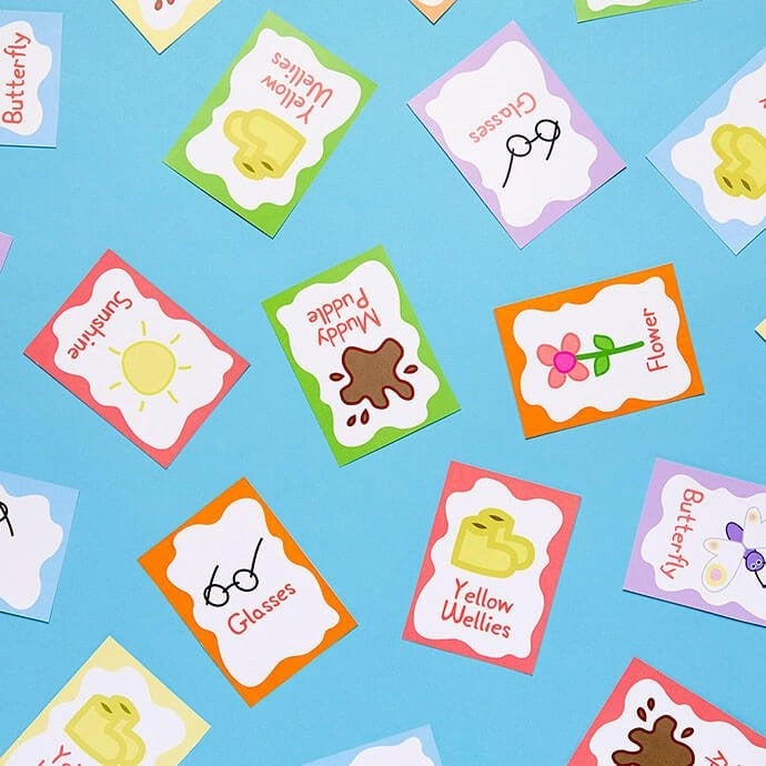 - Cut out one set of cards and hide them around your home and garden. You can make it as easy as you like, depending on the age group you’re dealing with.