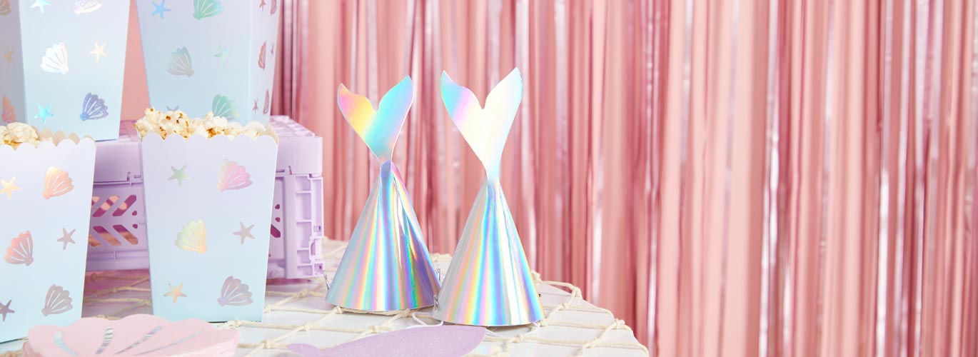 When it comes to our range of mermaid party tableware, you are spoilt for choice. However, we chose theMermaid Magic shell paper platesandcupsto match some of our decorations. The shell designs will ignite the big imaginations of your little guests and make them feel like a real-life mermaid eating off a real seashell. Forget fine china, we're all about splendid shellware! If you appreciate matching sets, you can shop our Mermaid Magic range here.