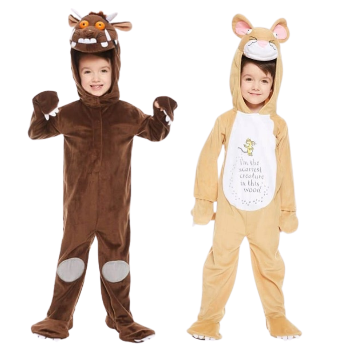 How about dressing the older child as the Gruffalo and the younger one as the mouse for a cute and easy costume idea?