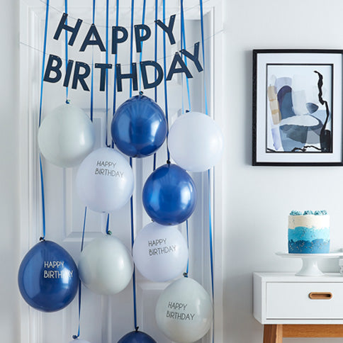 Pastel Blue & Gold Happy Birthday Banner - 1.7m