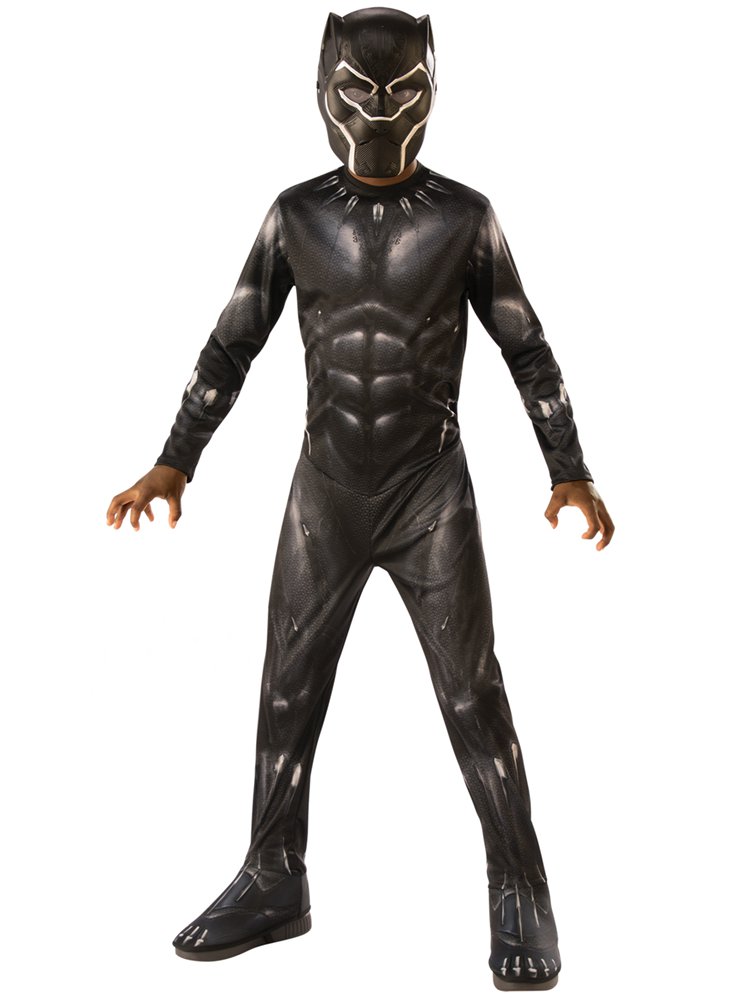 Defend Wakanda - and the entire world - as Black Panther! Our officially licensed Marvel Black Panther costume lets your child step up and step into Black Panther’s boots. The digitally printed jumpsuit has a printed muscle chest and torso detailing, plus the iconic claws around the neckline and 3D boot tops. The injection moulded mask has mesh eye and mouth holes, which recreates Black Panther’s striking look. This costume is perfect for any little superhero...Wakanda forever!