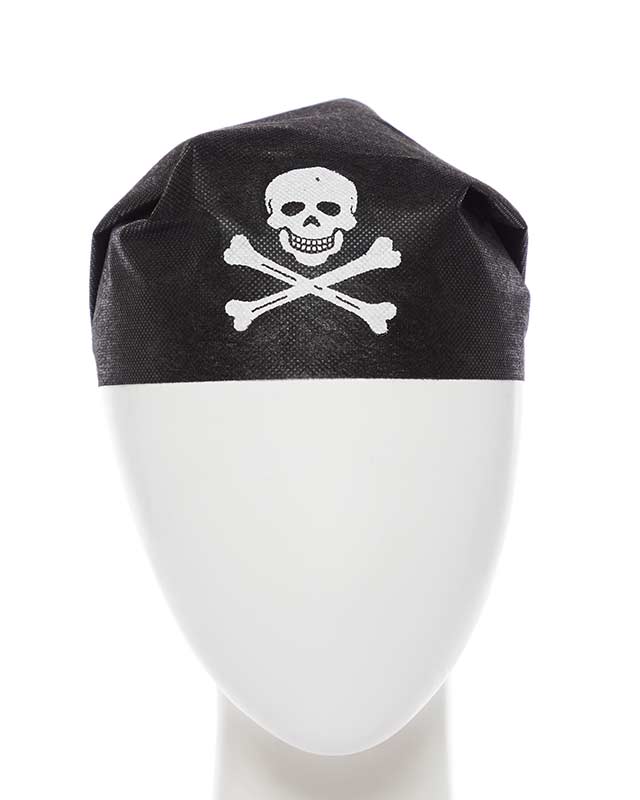 Let your little one look the part with this child's black pirate bandana with scull and bone print to the front, a great accessory for their next pirate themed party, Bandana length 77.5cm.