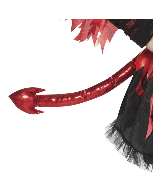 Let her embrace her wicked side in this positively evil Dare Devil costume. A black and red dress with flame detail to the neckline and an adorable padded demon tail, finished off with a black tutu with metallic red overlay.