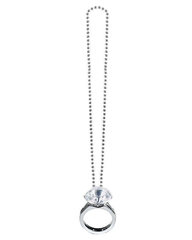 - Silver plastic beaded necklace comlete with oversized giant novelty diamond engagement ring