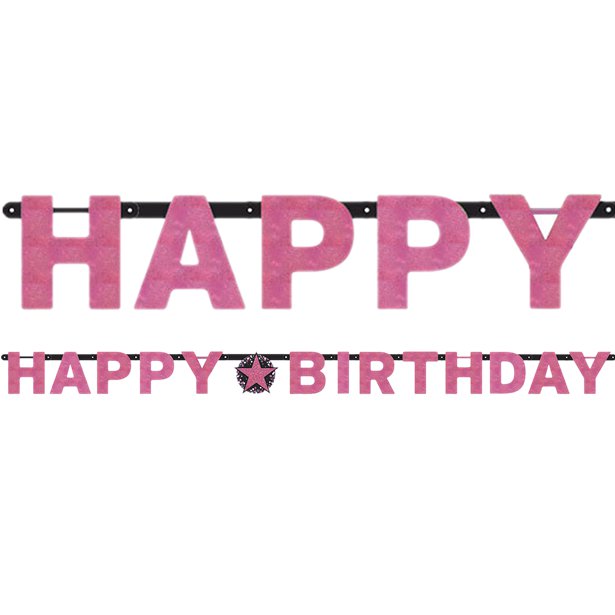 Pink 'Happy Birthday' Holographic Paper Letter Banner - 2.1m