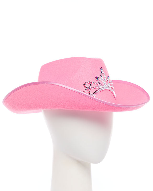 Add some sass to your cowgirl outfit with this pretty pink hat! It's decorated with a sparkly sequin tiara, so you'll truly be the queen of the Wild West!
