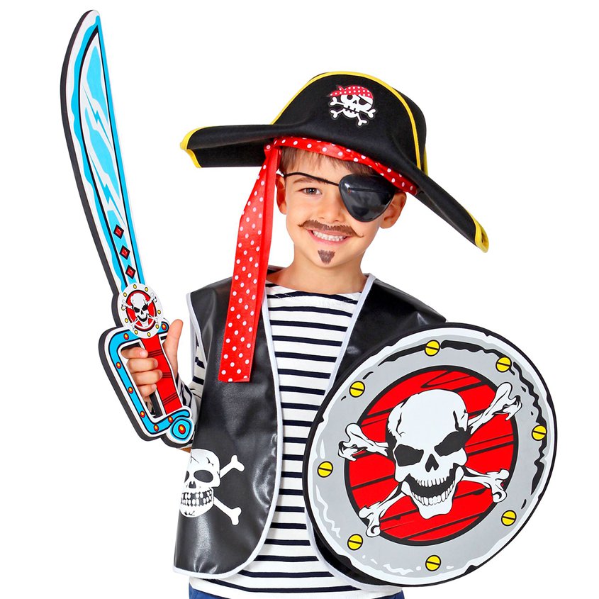 Pirate cutlass made from soft EVA foam & Shield, a perfect accessory for any pirate costume - Length of sword - 52cm