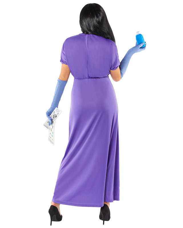 Sometimes it's fun being the baddie and the Grand High Witch is possibly the baddest villain from the whole Roald Dahl universe! She has the ability to shoot jets from her eyes and frazzle people like fritters. Ms Grand Witch also has an evil plan to rid England of its children by turning them into mice, causing their teachers to kill them.Transform into the sinister being in our officially licensed Roald Dahl Grand High Witch adult costume and show them who's the unfairest of them all.The costume consists of an ankle-length silky purple dress with Quentin Blake illustrations, long gloves (of course), a long black wig, a recipe card and a felt, padded potion bottle. The costume also comes with a bookmark, making it the perfect costume for teachers on World Book Day!
